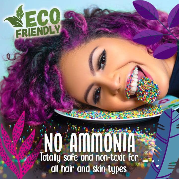 Ammonia & peroxide-free. This specially formulated and nutrient enriched dye spray is even safe for kids to use. It envelops the hair but won’t penetrate the hair follicle, ensuring no damage is caused to your hair. Waterproof & streak-proof.
